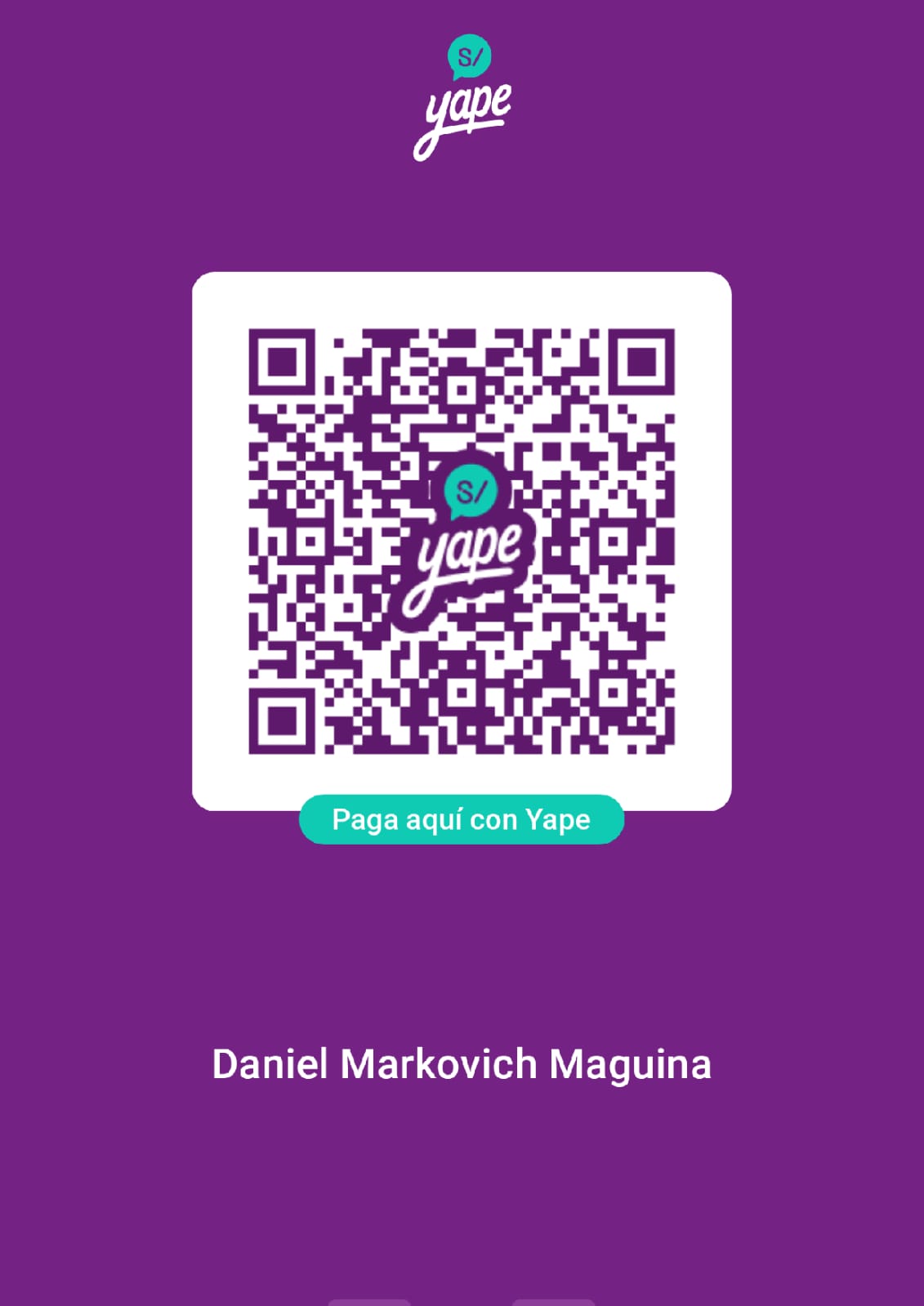Puedes escanear el código QR o realizar el pago por YAPE / PLIN al número 996344003 a nombre de Daniel Markovich Maguiña. Una vez realizado el pago, adjunta la captura de pantalla en la siguiente ventana y procesaremos tu orden!