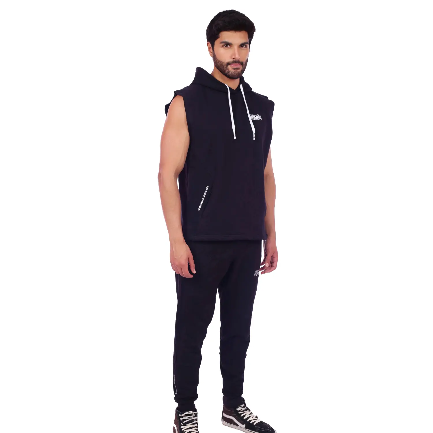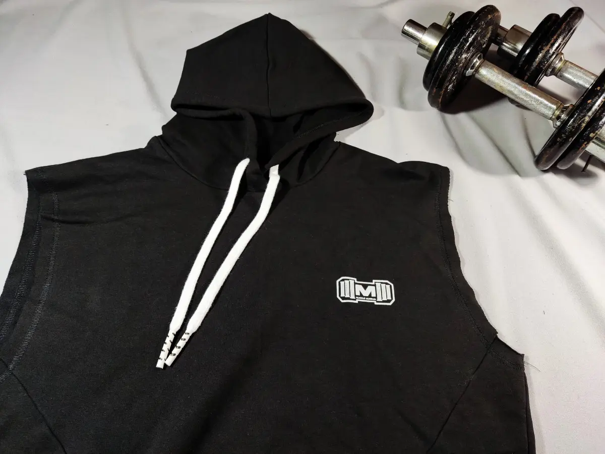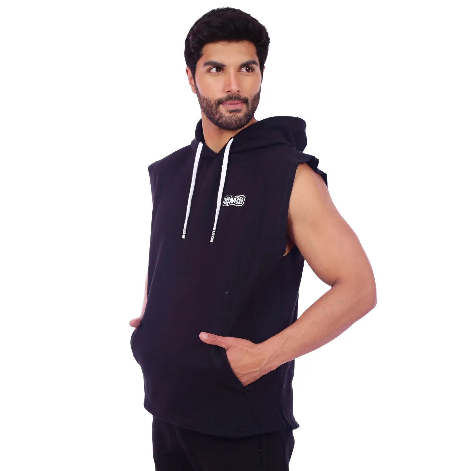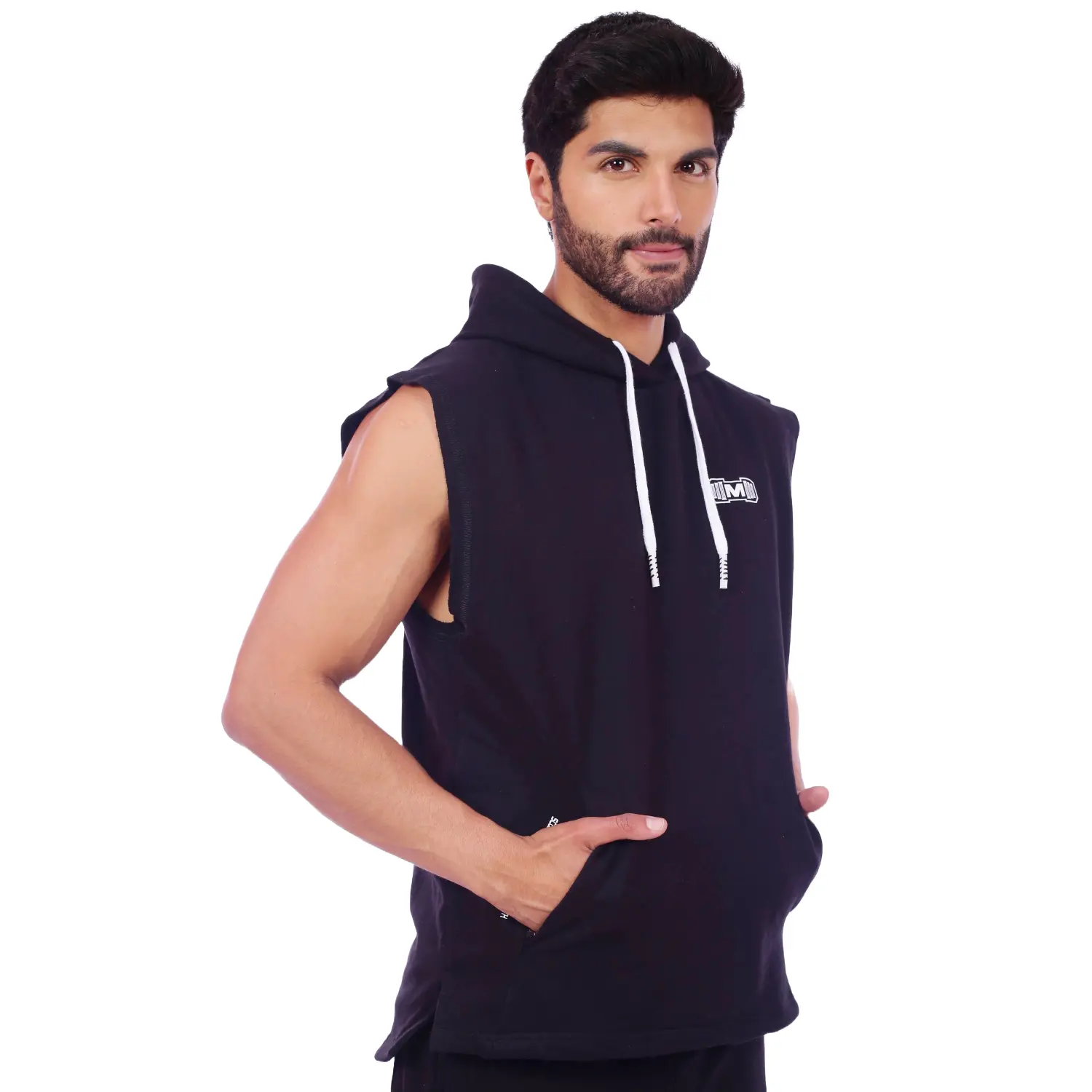 Polera Manga Cero para hombre, con capucha y pasador ajustable de color blanco. Tiene estampado color blanco y diseño deportivo, ideal para cualquier práctica deportiva.