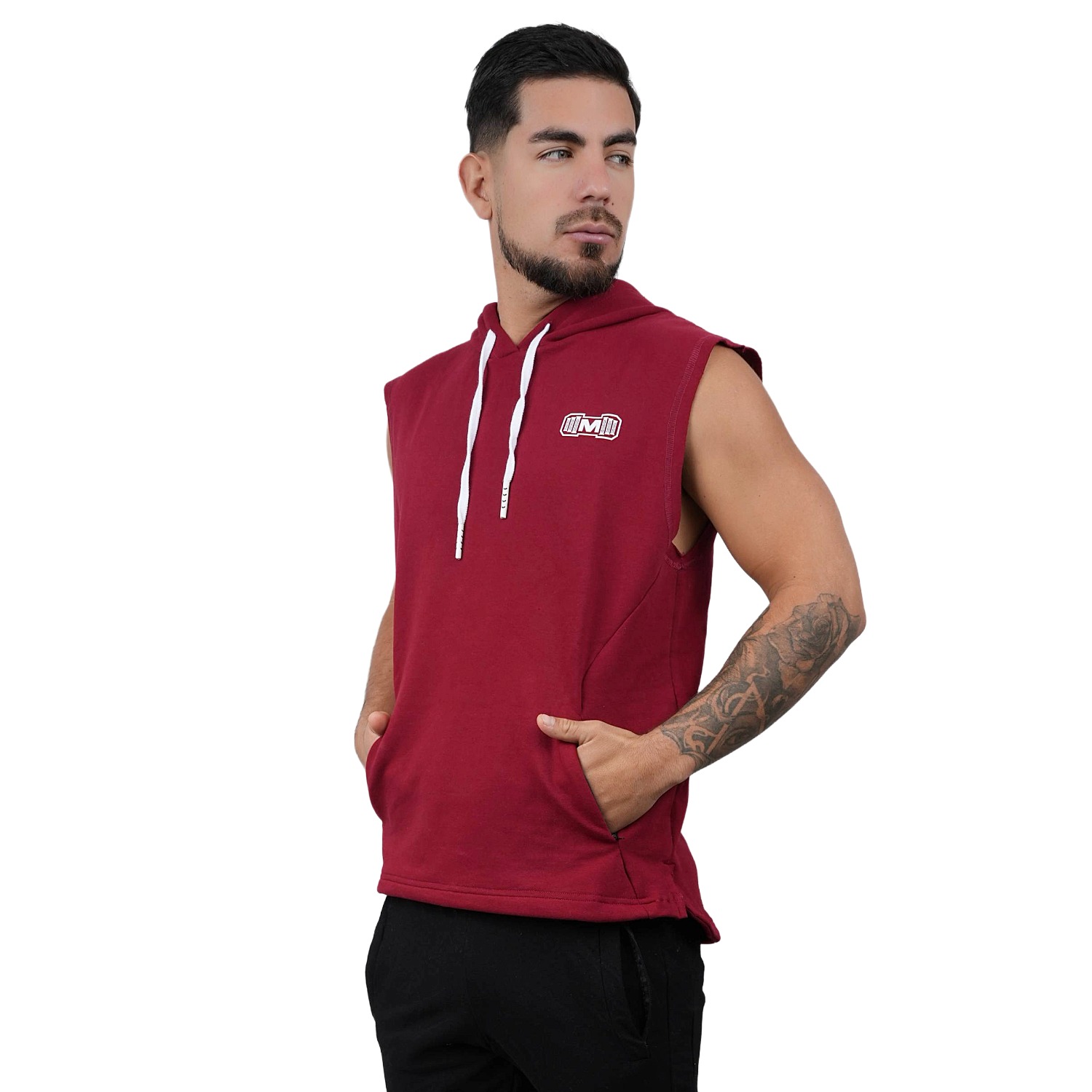 Polera Manga Cero para hombre, con capucha y pasador ajustable de color Blanco. Tiene estampado color blanco y diseño deportivo, ideal para cualquier práctica deportiva.