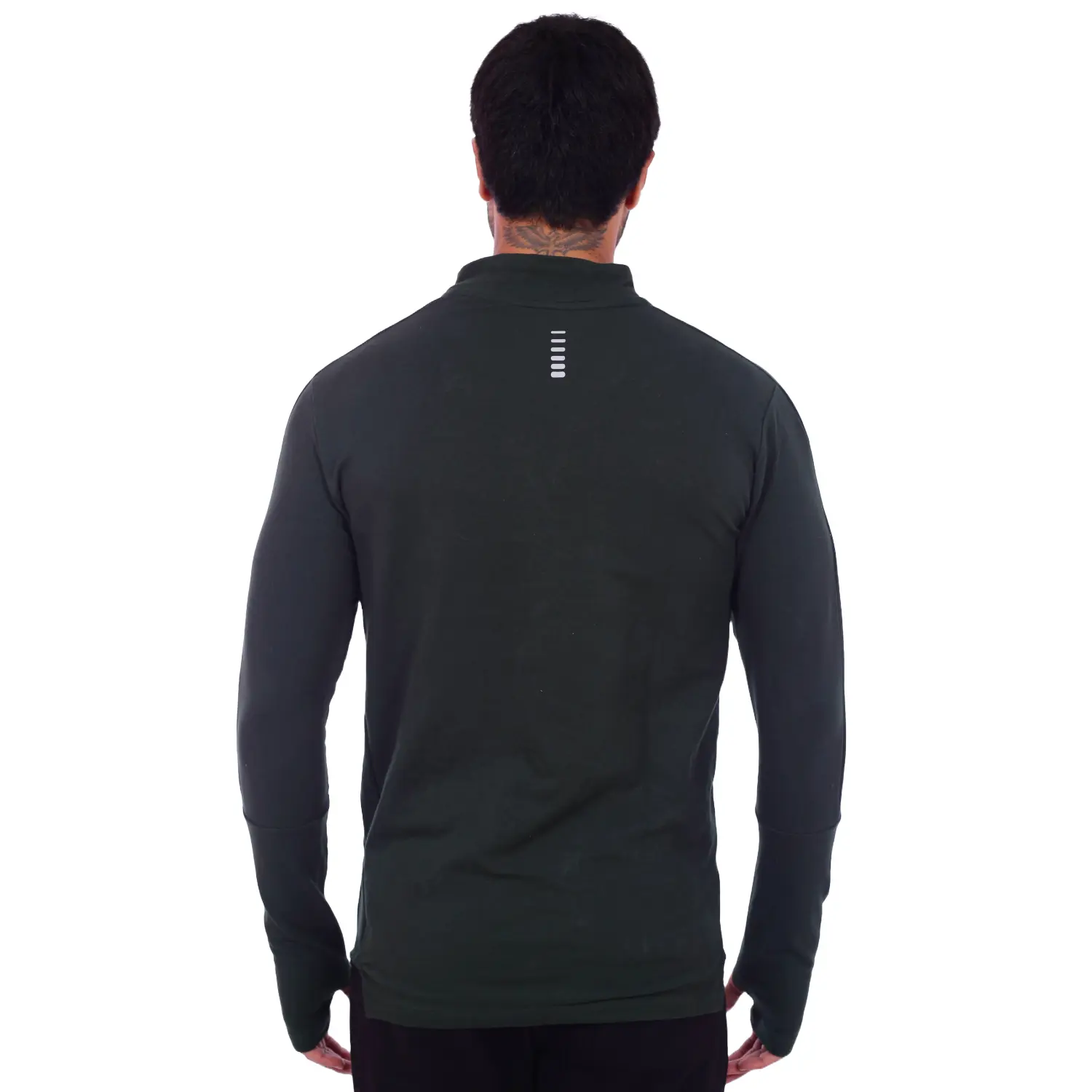 Polera Slim Fit para hombre, se amolda al cuerpo, es de manga larga y tiene agujero para el dedo pulgar. Tiene estampado color reflectivo y diseño deportivo.