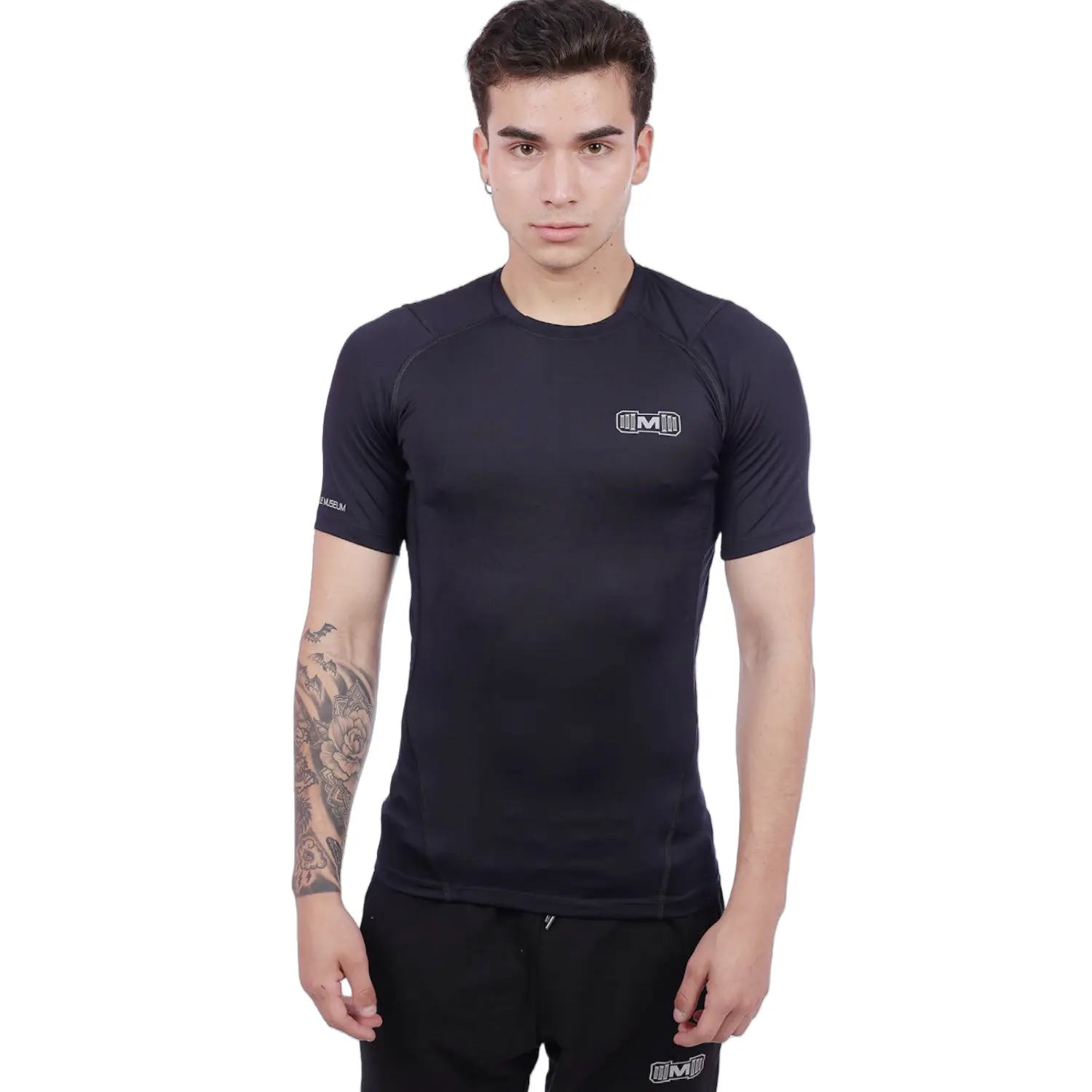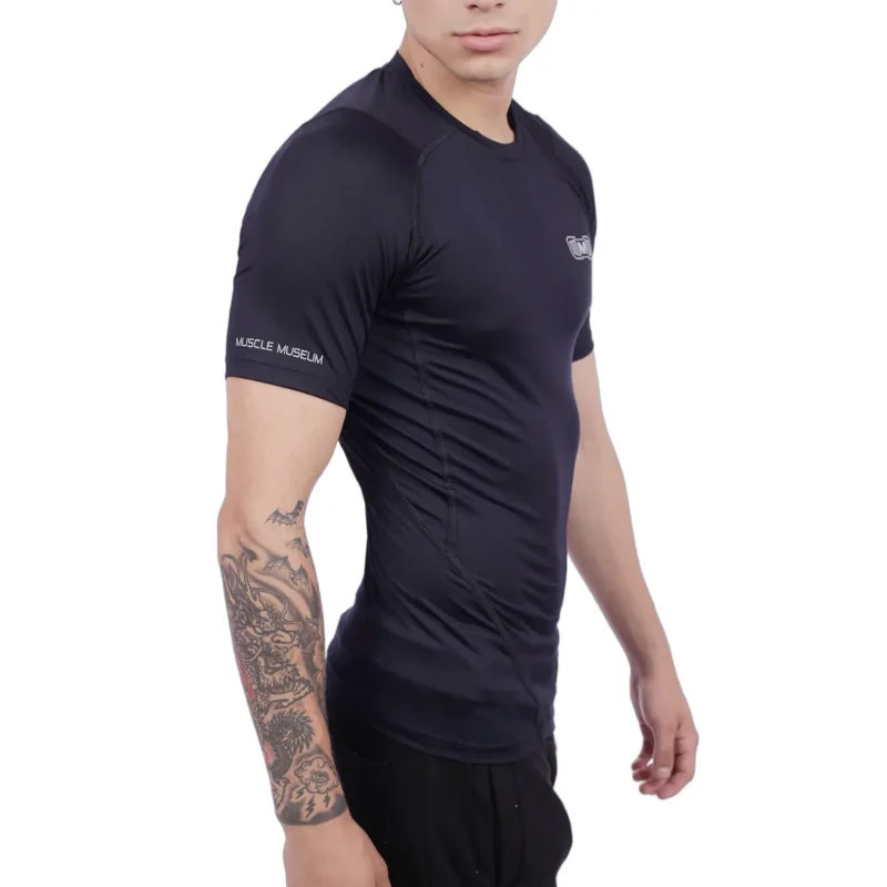 Polo Deportivo De Compresión Manga Corta Para Hombres, con estampado y diseño deportivo es ideal para ser usado como calentador para practicar deporte por las noches o para cualquier práctica deportiva.