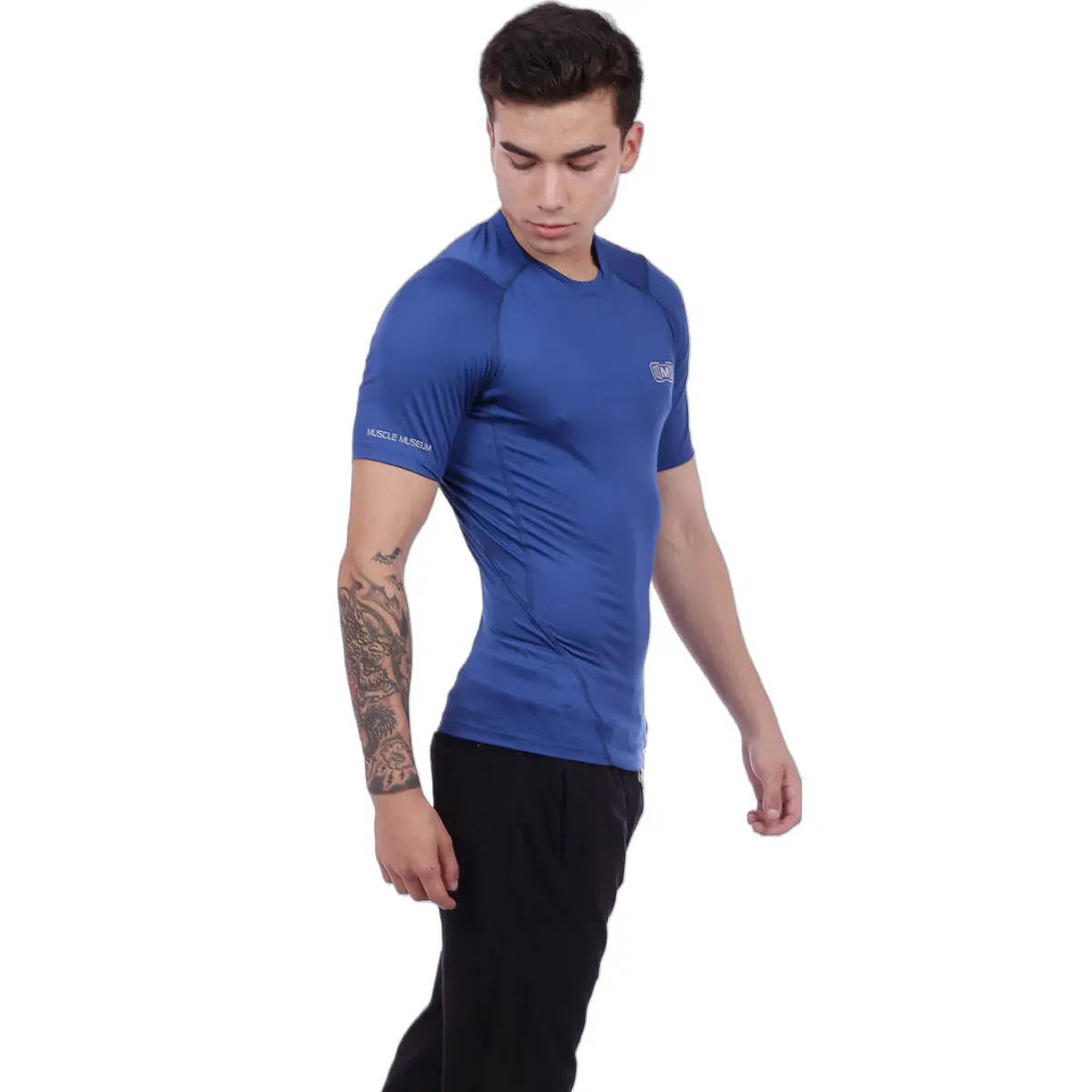 Polo Deportivo De Compresión Manga Corta Para Hombres, con estampado y diseño deportivo es ideal para ser usado como calentador para practicar deporte por las noches o para cualquier práctica deportiva.