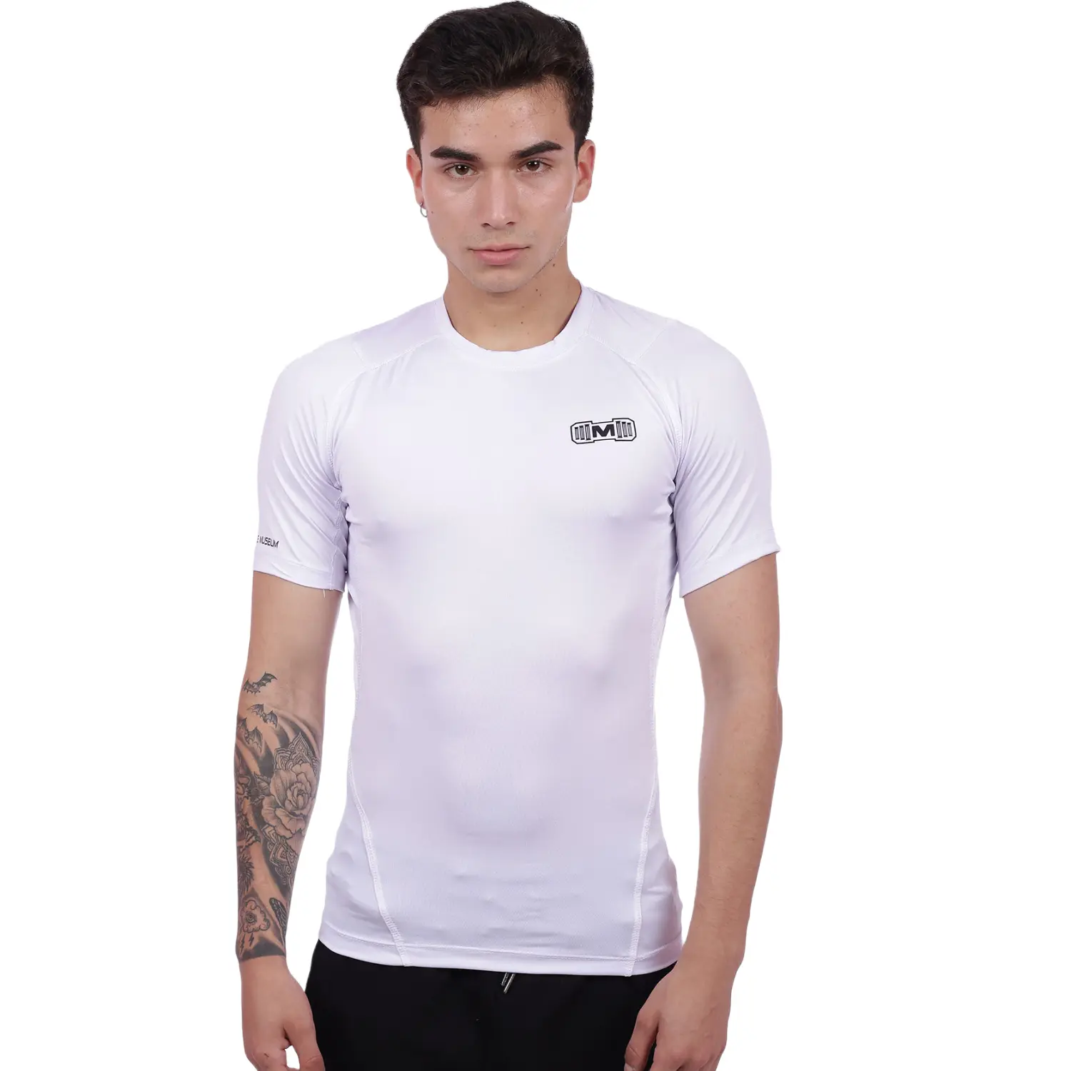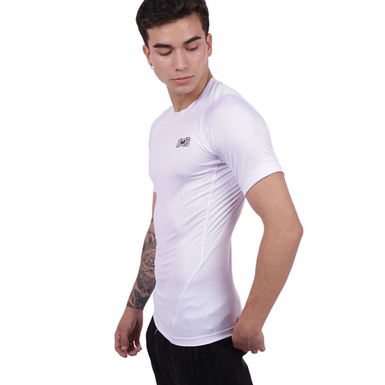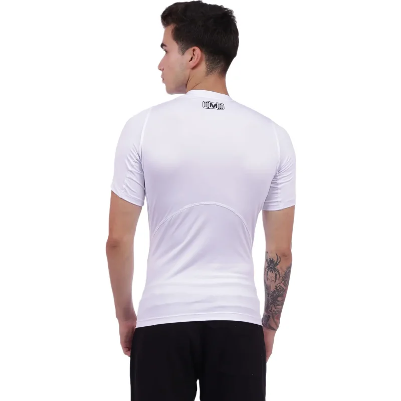 Polo Deportivo De Compresión Manga Corta Para Hombres, con estampado y diseño deportivo es ideal para ser usado como calentador para practicar deporte por las noches o para cualquier práctica deportiva.