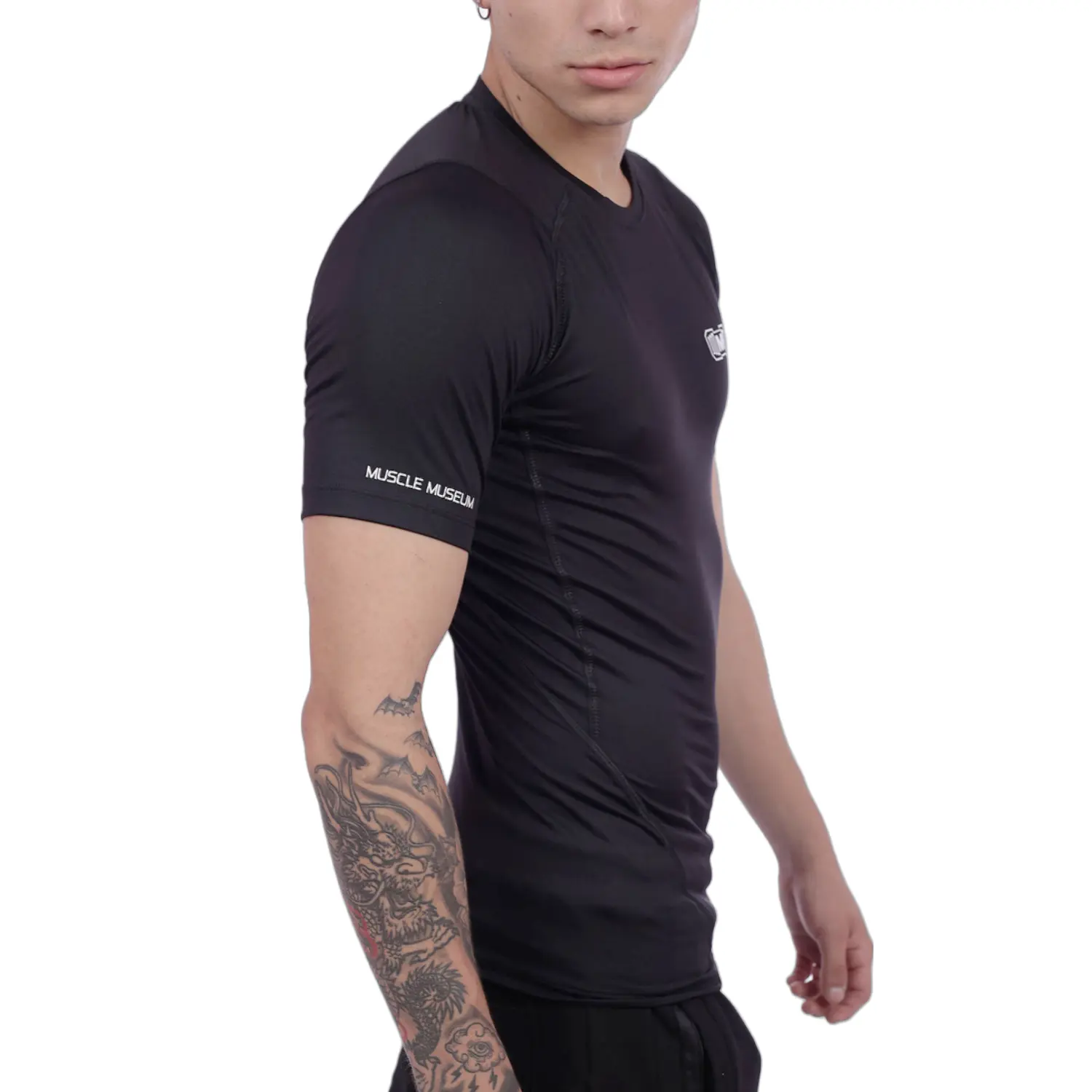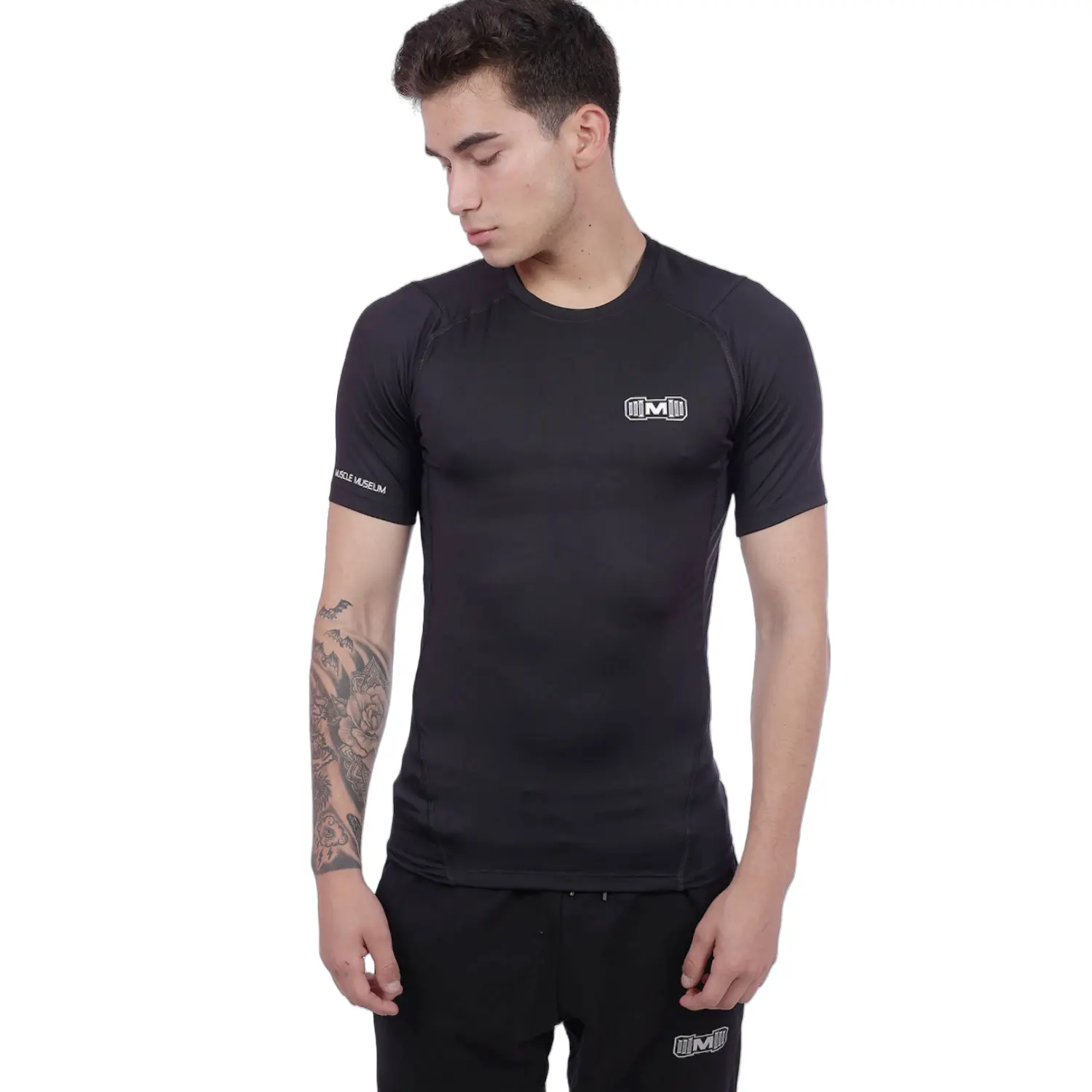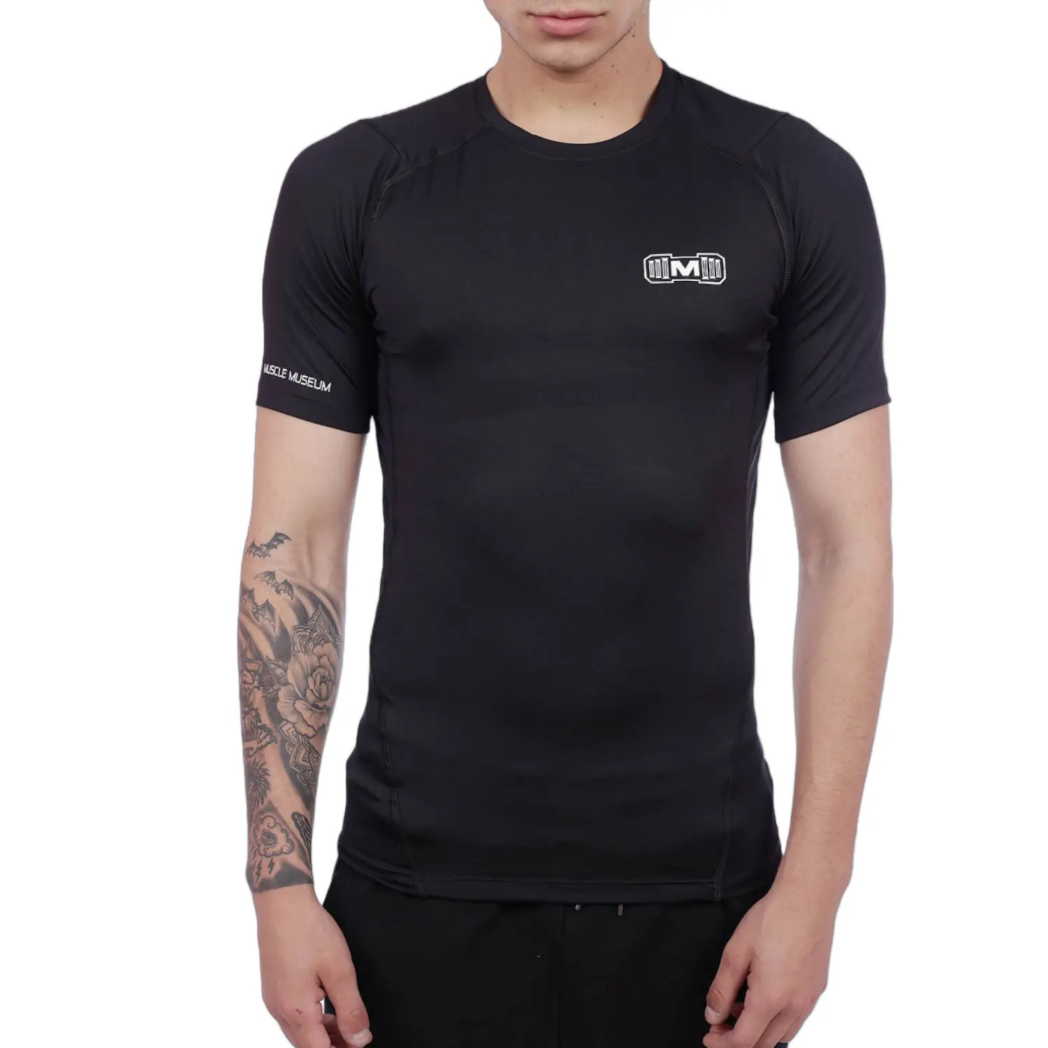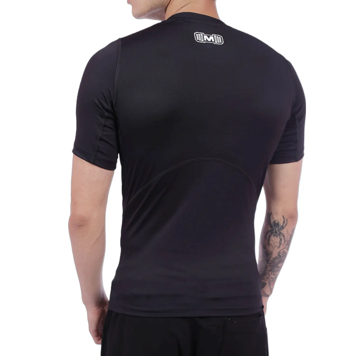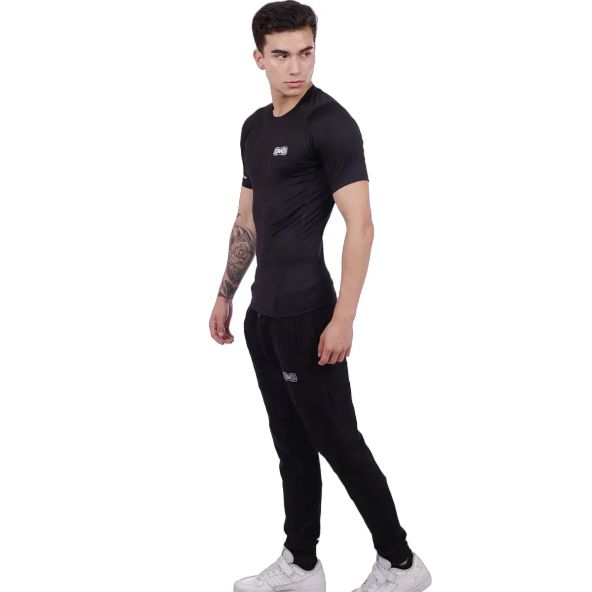 Polo Deportivo De Compresión Manga Corta Para Hombres, con estampado y diseño deportivo es ideal para ser usado como calentador para practicar deporte por las noches o para cualquier práctica deportiva.