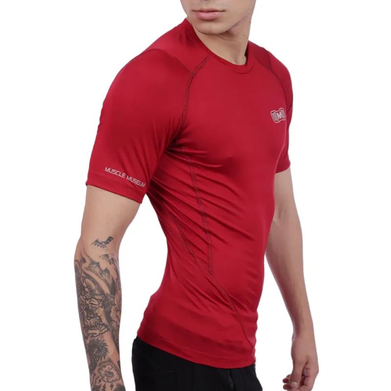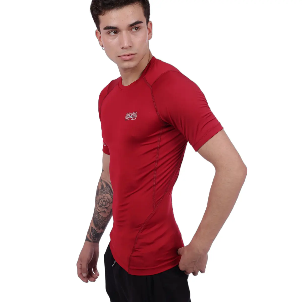 Polo Deportivo De Compresión Manga Corta Para Hombres, con estampado y diseño deportivo es ideal para ser usado como calentador para practicar deporte por las noches o para cualquier práctica deportiva.