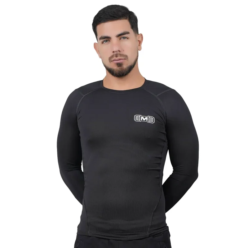 Polo Deportivo De Compresión Manga Larga para hombre, con estampado color blanco y diseño deportivo, ideal para cualquier práctica deportiva.