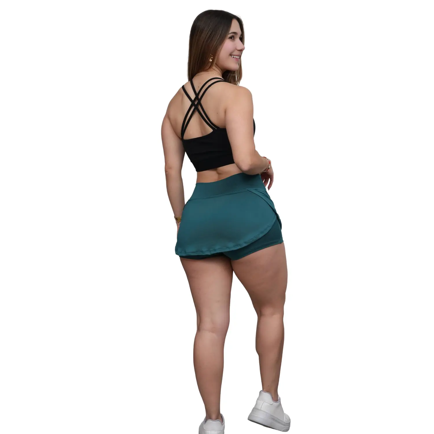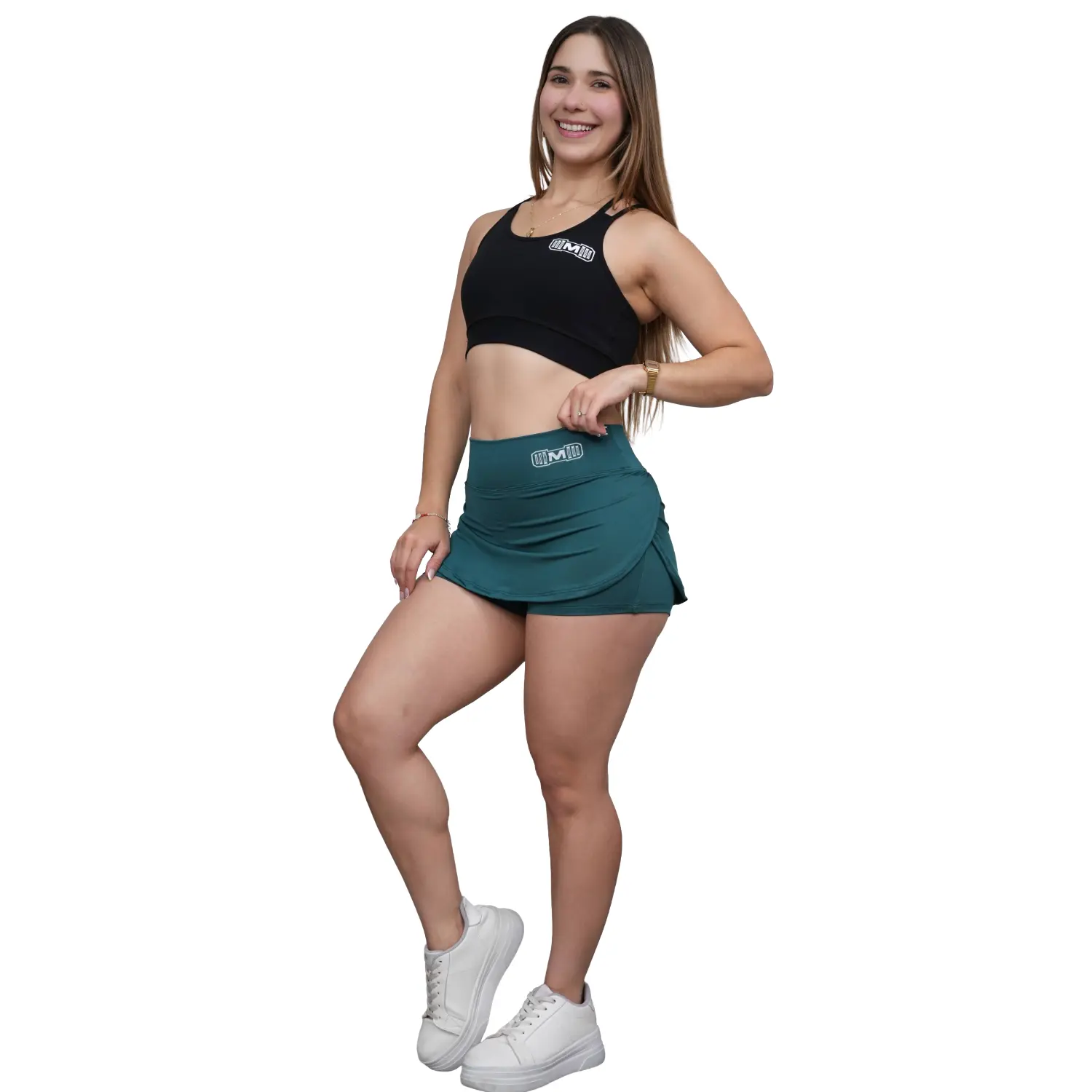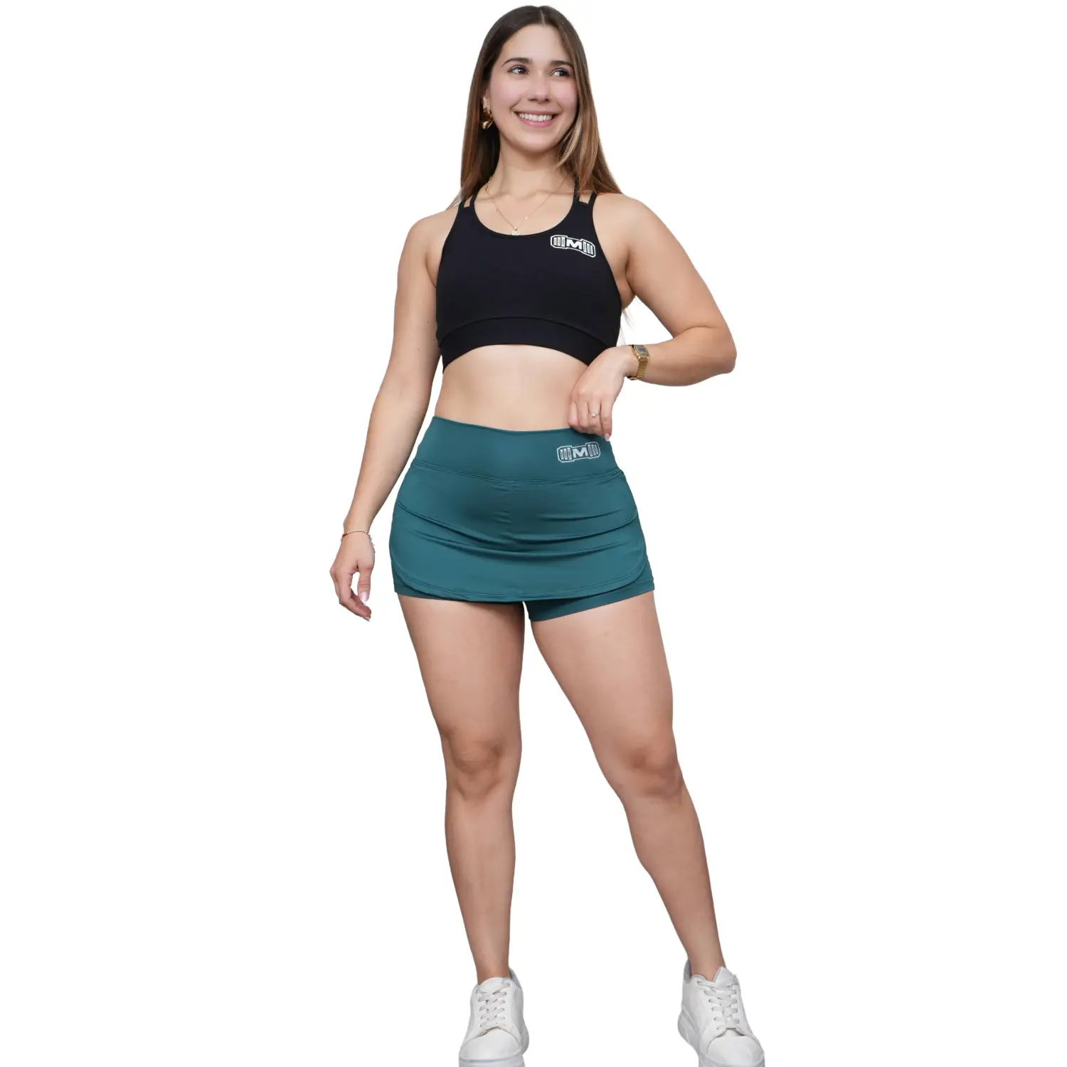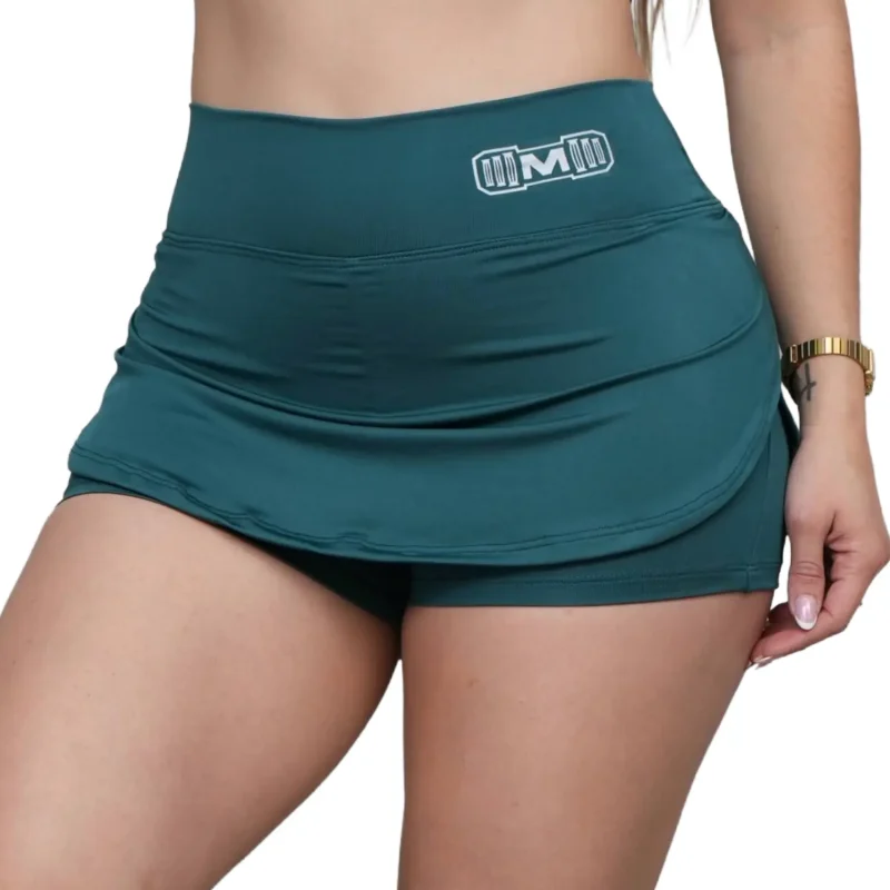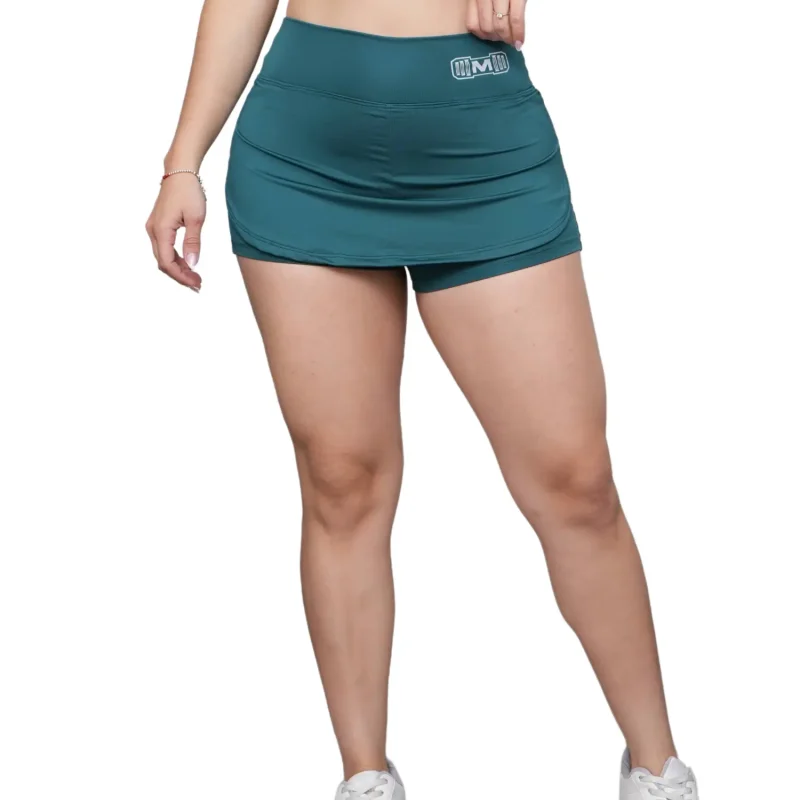 Short Falda Deportivo para Mujer. Ideal para entrenar en el gimnasio y practicar deporte. Hecho de suplex Deportivo, con estampado color blanco y diseño deportivo para mayor comodidad.