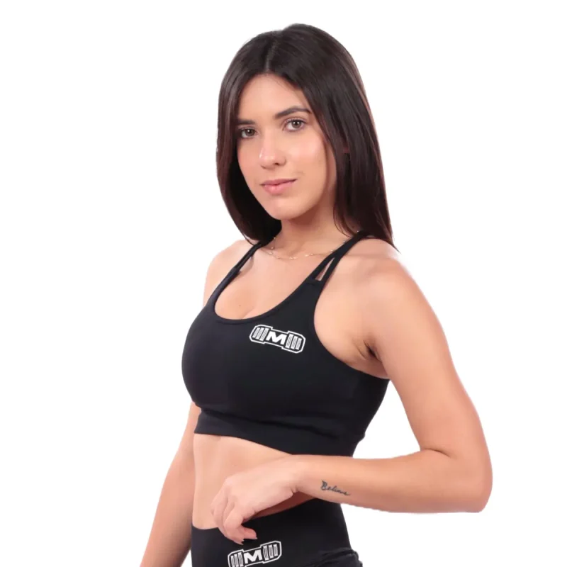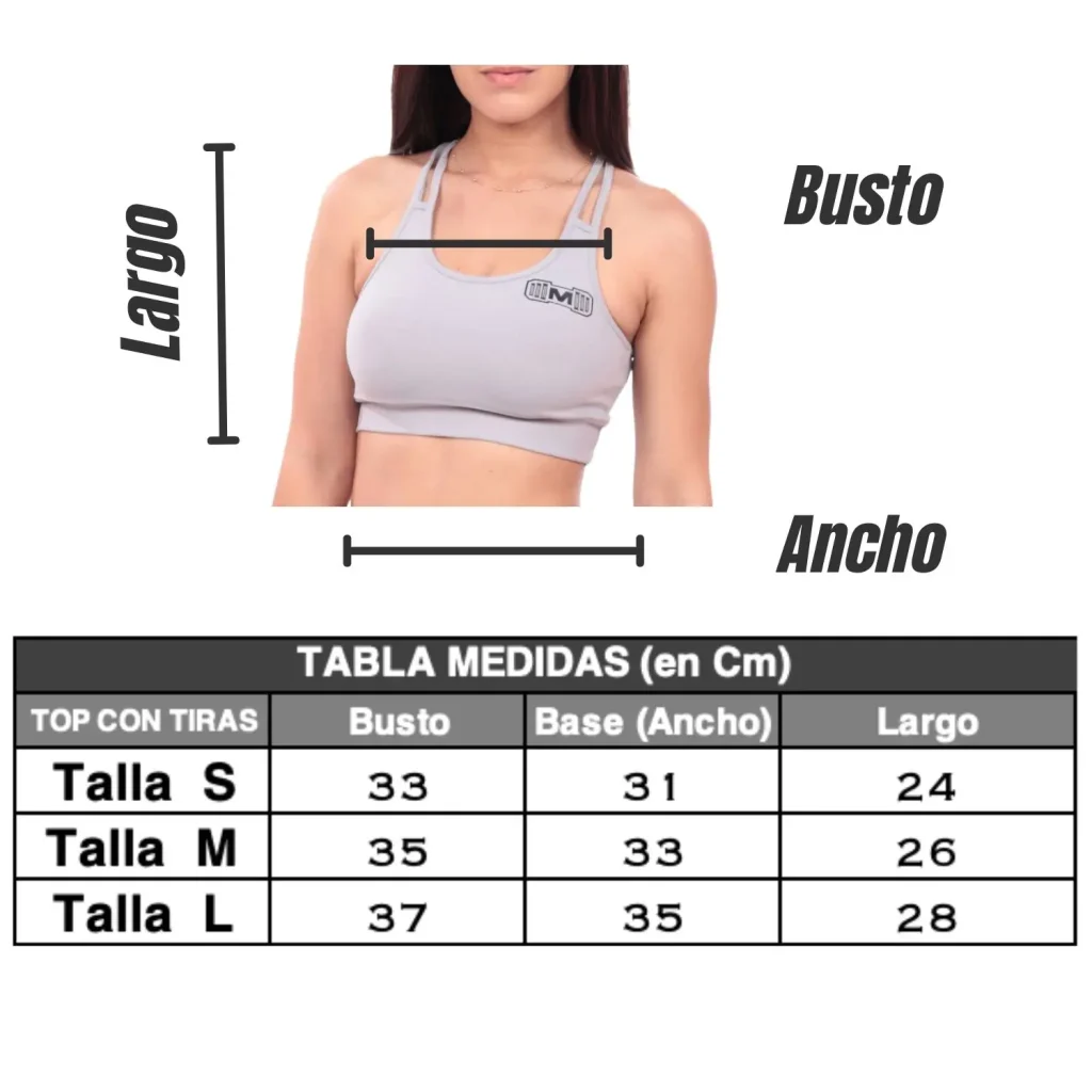 Top Deportivo con tiras para Mujer. Ideal para entrenar en el gimnasio y practicar deporte. Hecho de suplex Deportivo, con estampado color blanco y diseƱo deportivo para mayor comodidad.